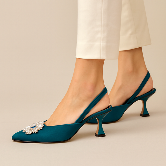 Luxe Bloom Slingbacks-Teel Green