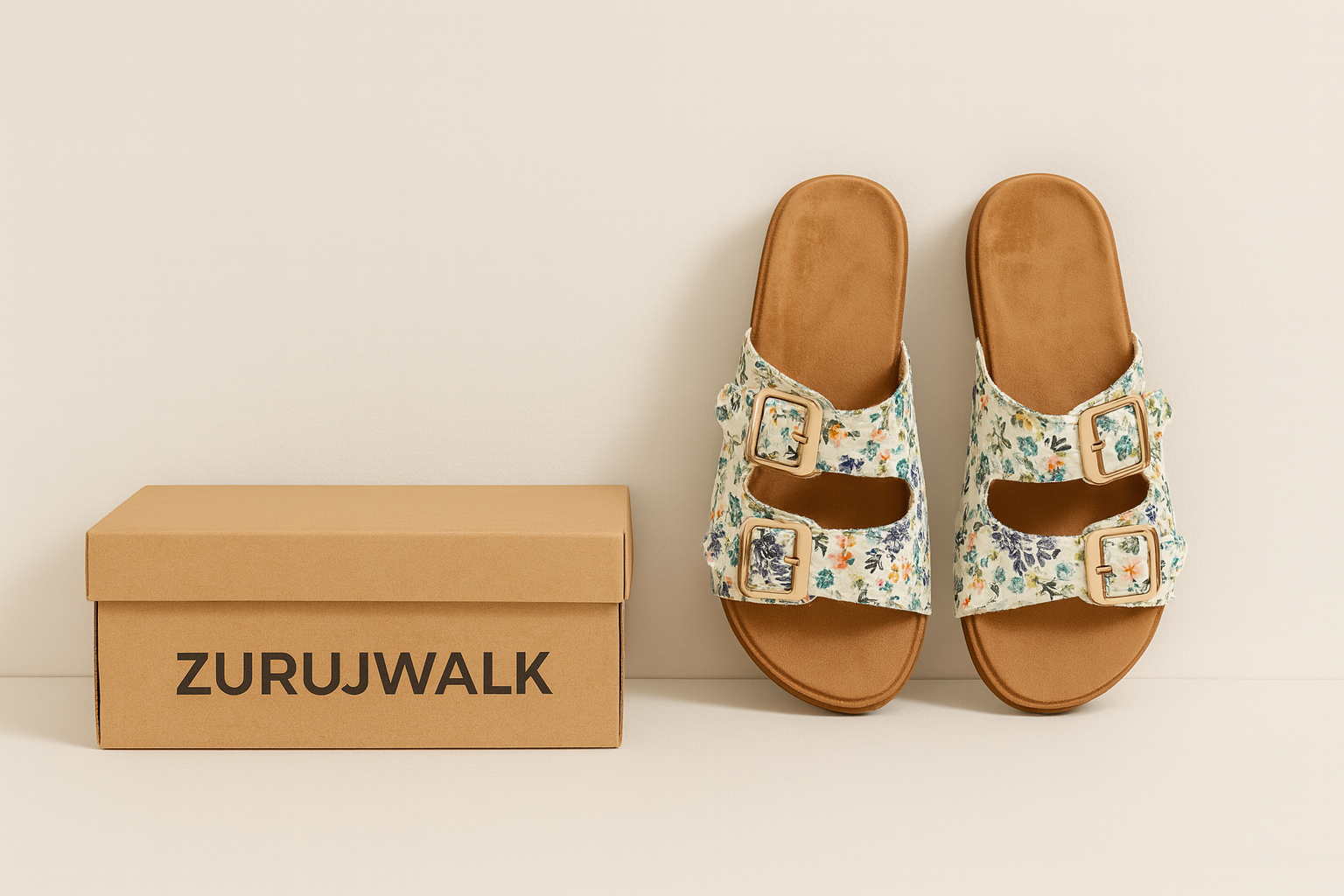 Step into comfort and charm with the BloomGlide Blue floral buckle sliders – where elegance meets everyday ease. Featuring a cushioned suede insole and a rich navy canvas upper adorned with delicate rose prints, these slip-ons are perfect for casual strolls, brunches, or laid-back evenings. The dual silver-tone buckles offer adjustable fit and timeless flair. An ideal addition to your summer and spring footwear collection.