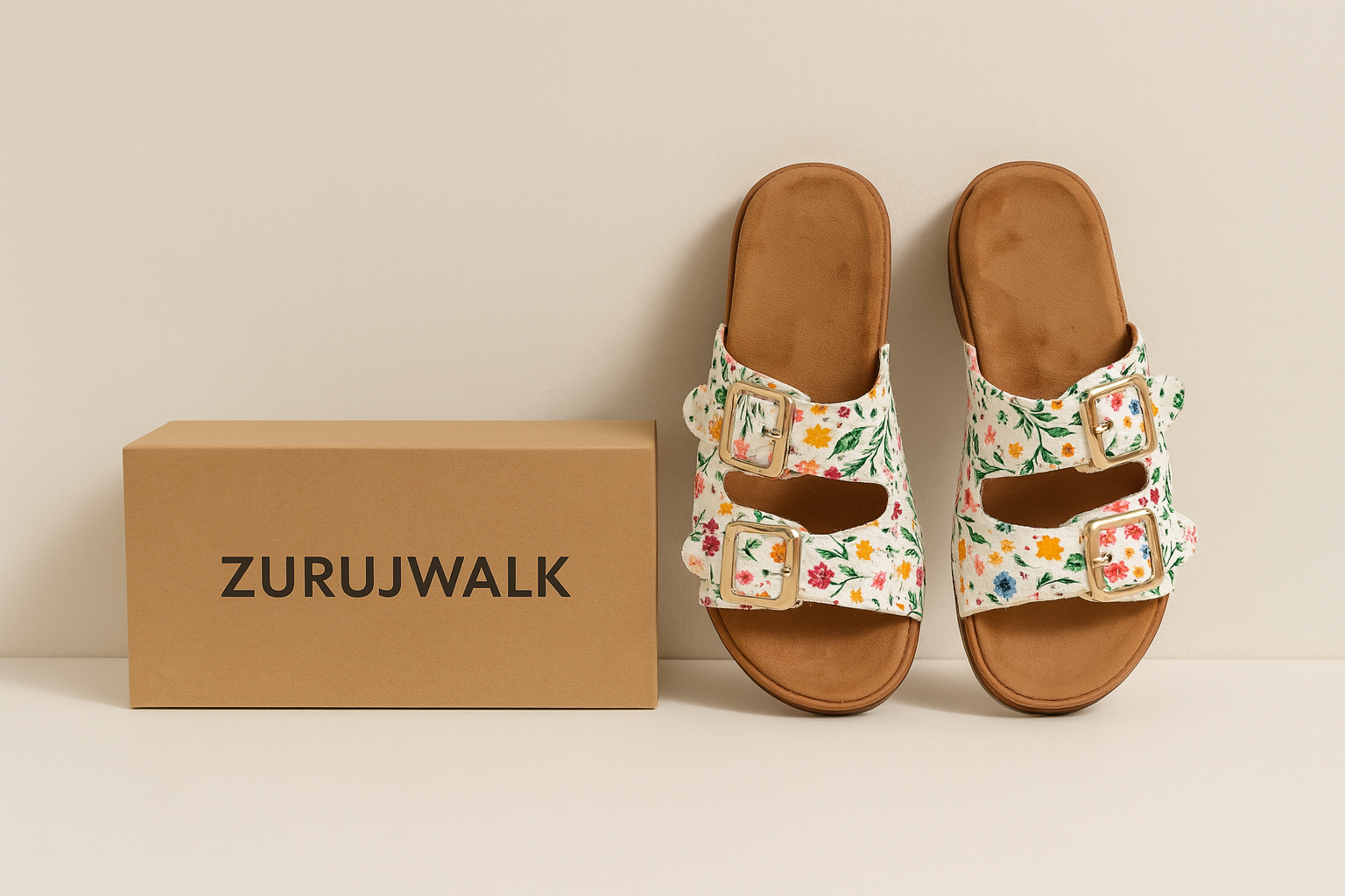 Step into floral bliss with our Blossom Meadow Slides, designed for ultimate comfort and effortless charm. These lightweight summer sandals feature a crisp white base adorned with playful orange, pink, and green floral prints, bringing a burst of color to every step. Double buckle straps add a trendy twist while ensuring a secure, adjustable fit. Perfect for casual strolls, daily wear, or adding a fresh vibe to your desi or western outfits.