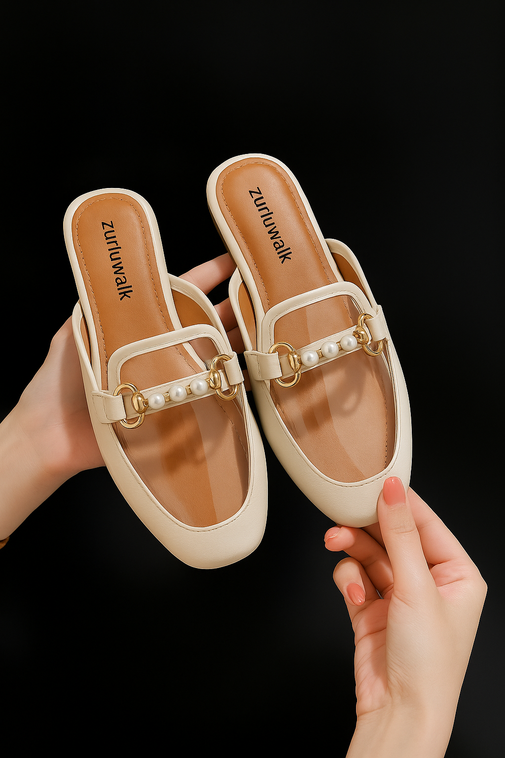 Step into elegance with the Transparent Mules by ZurujWalk – a perfect fusion of style and sophistication. These cream-toned mules feature a transparent upper embedded with a delicate floral print in soft pinks, oranges, and warm earthy tones, enhanced with a golden chain and pearl detailing. The flat sole ensures all-day comfort, while the airy design adds a refreshing twist to your everyday or semi-formal outfits. Ideal for brunch dates, office wear, or casual outings, these mules redefine summer chic.